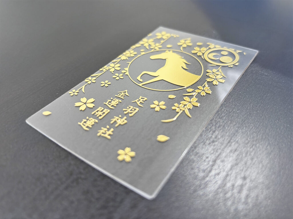 クリアカードという素材特性を活かし、「授与された方々の未来が、クリアに、見通し良く開けますように」という願いを込めています。薄型(0.5mm)のため、お財布のカードポケットにスマートに収まります。